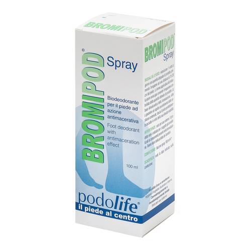 BromipodSPRAY RINFRESCANTE Modalità d'uso Nebulizzare 1 volta al giorno una quantità adeguata di prodotto premendo l’erogatore alla distanza di 15-20 cm dal piede. La base idroalcoolica della formulazione, oltre a garantire un rapido assorbimento dei principi attivi, lascia il piede perfettamente asciutto in virtù della sua elevata volatilità: è possibile quindi indossare qualsiasi tipo di calzatura subito dopo l’applicazione. Componenti Alcohol denat.; aqua; PEG-40 hydrogenated castor oil; zinc ricinoleate; menthol; lactic acid; tocopheryl acetate; triclosan; sodium metabisulfite. Formato 100 ml. Cod. 4012 Componenti Alcohol ...